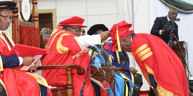 Jana Alhamis Novemba 21 Rais wa Tanzania, John Magufuli alitunikiwa shahada ya heshima ya Udaktari wa Falsafa na Mkuu wa chuo hicho, Rais mstaafu wa Tanzania, Benjamin Mkapa.